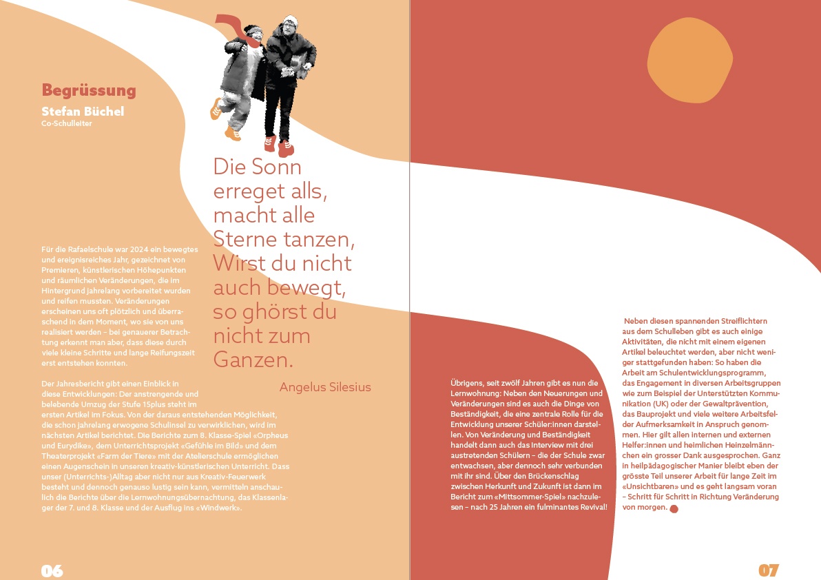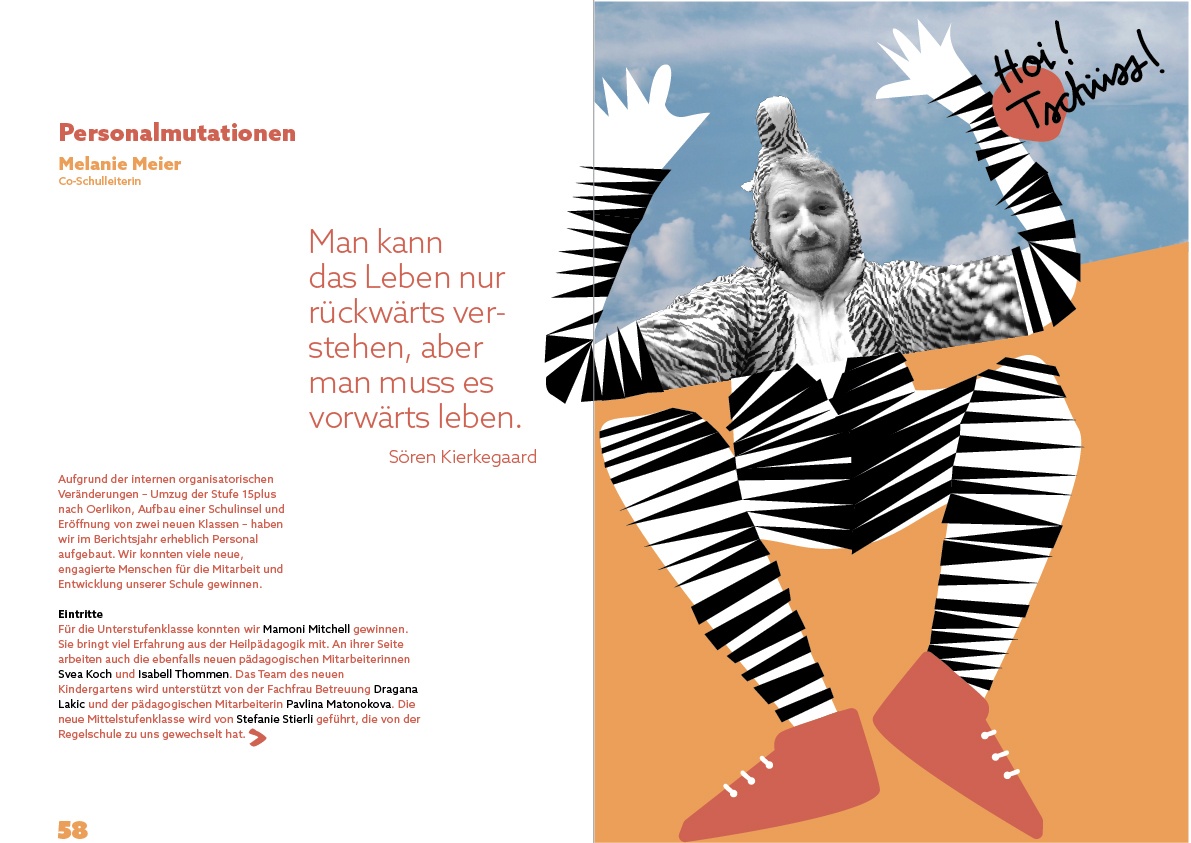 music, jumping, making art, playing theatre, expressing emotions, the week-camp... this was my third year designing the school's report and the main theme was step by step
